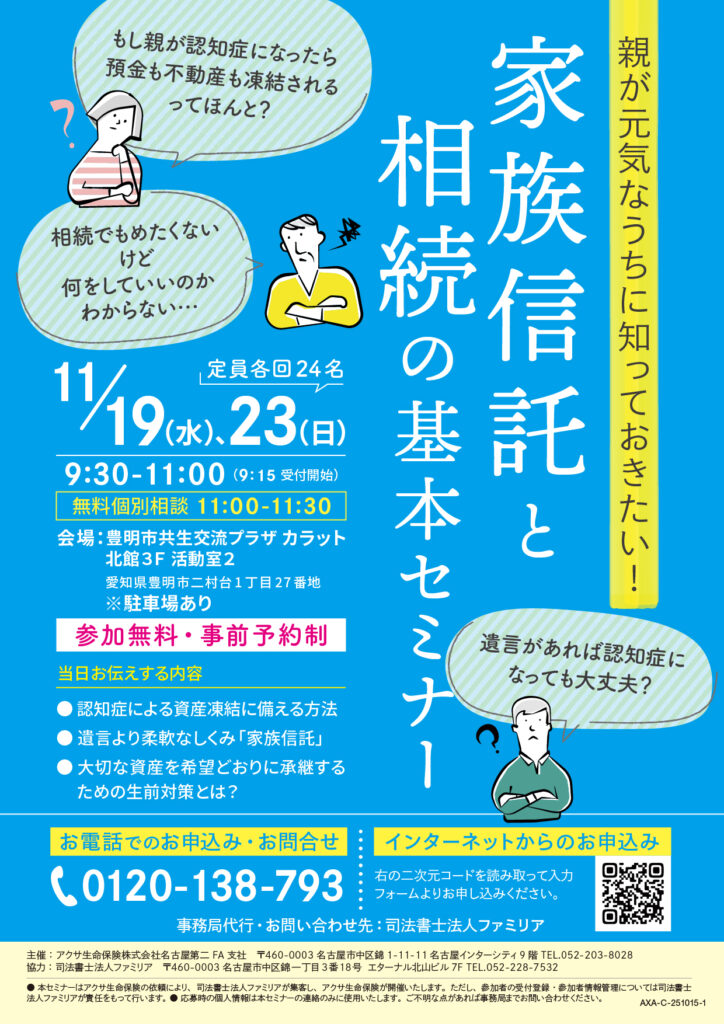 セミナー 11月26日刈谷市 一般のお客様向け家族信託セミナーのご案内
